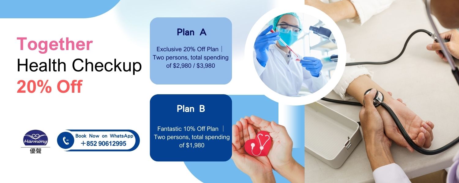 Starting today, enjoy the limited-time discount of “Health Together, Share the Peace of Mind.” Bring a friend or family member for a health check-up and enjoy up to 20% off!